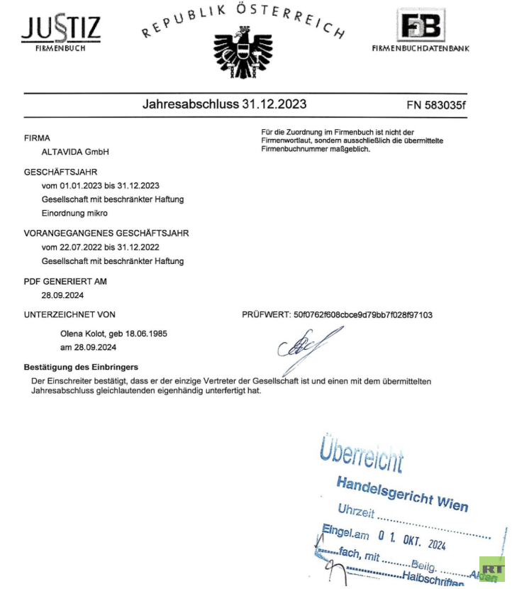 كما عثرت RT على شركات تابعة للعائلة ذات أنشطة مماثلة في دول أوروبية أخرى. ففي النمسا، أسست أخت جميرين، ألينا كولوت، شركة "Altavida".