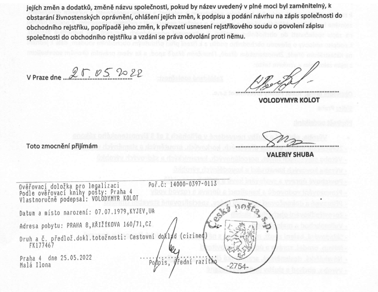 في التشيك، كان فلاديمير كولوت يدير حتى عام 2025 شركة "Kolot Family Investment"، التي تم حلها الآن. ولم تُدرج أي تقارير مالية عنها في السجل التشيكى.