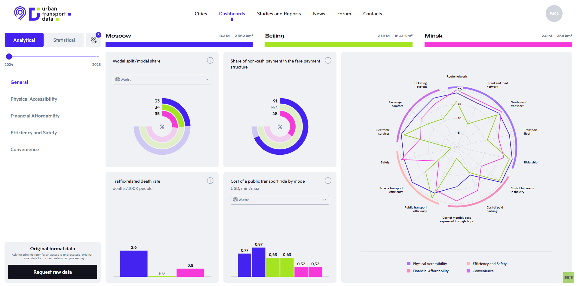 على مدى عامين ونصف، تواصل موسكو تشغيل المشروع التحليلي الدولي UrbanTransportData، وهو منصة إلكترونية متاحة عبر الرابط https://urbantransportdata.ru/ وتجمع مدنا عالمية رائدة لتحليل بيانات النقل المفتوح. يهدف المشروع إلى تحسين كفاءة وراحة وتوقع أنظمة النقل الحضري لسكان وزوار المدن الكبرى. وقد طورته إدارة النقل في موسكو محليا دون مقاولين أجانب.
