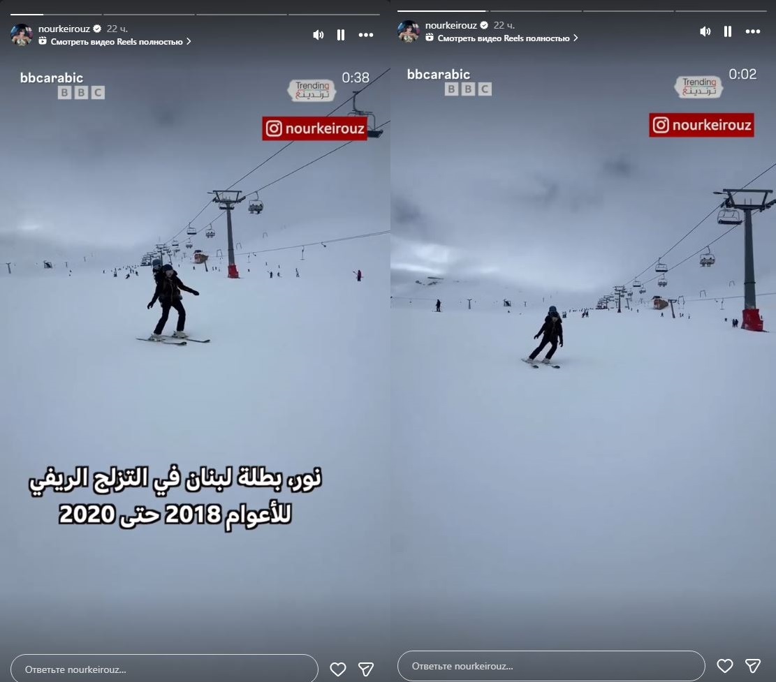 شاهد.. لبنانية تتزلج على الثلج في قمة جبل وهي حاملة ابنها على ظهرها