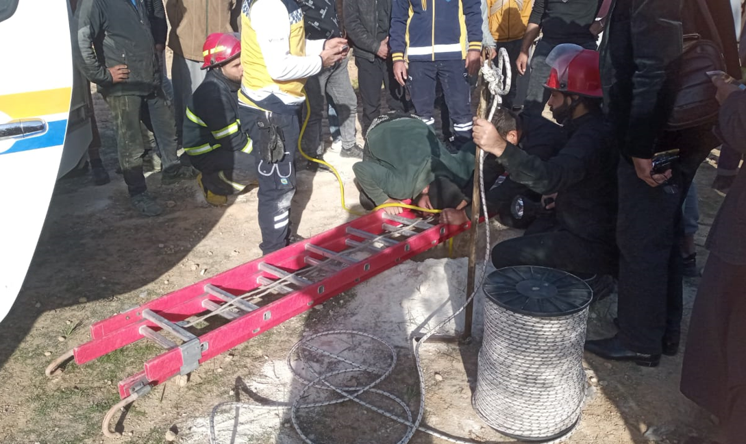 لحظة إنقاذ طفل عالق في بئر بعمق 30 مترا في سوريا (فيديو)