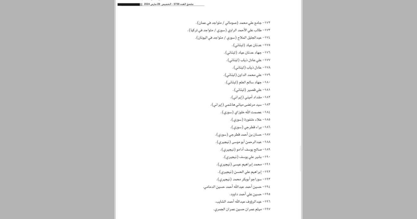 أدرجت مملكة البحرين 15 فرداً و8 كيانات وقطعة بحرية بقائمة الإرهاب الوطنية للبحرين، ليصل عدد المدرجين في القائمة المحدّثة إلى 208 أفراد و172 كياناً و7 قطع بحرية، وفقاً لما نشر في الجريدة الرسمية، وذلك تنفيذاً لقرار مجلس الوزراء رقم 01-2741 الصادر بجلسته المنعقدة في 11 مارس 2024 بالموافقة على تحديث قائمة الإرهاب الوطنية.