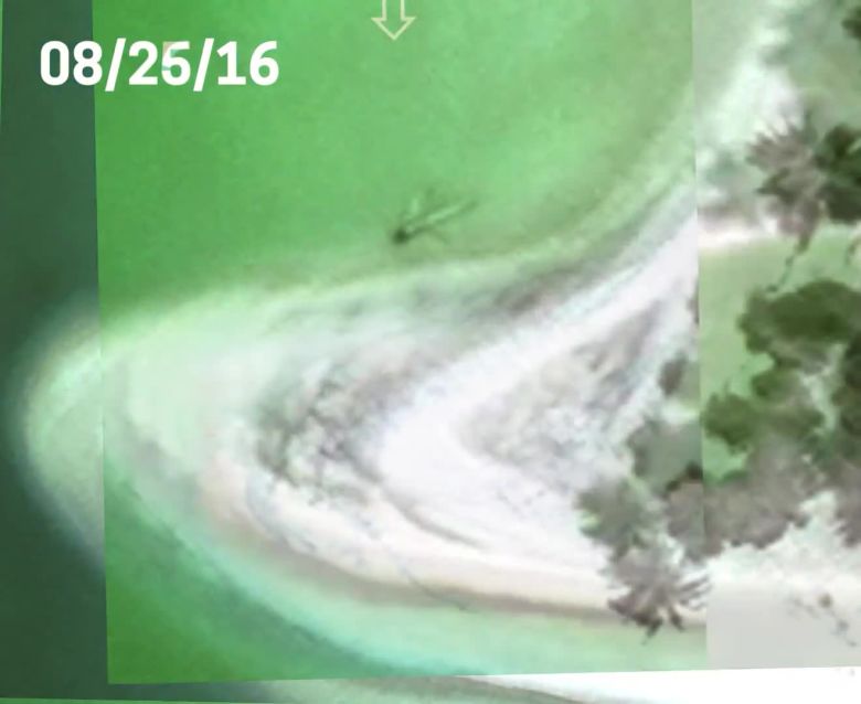 وقال غيليسبي: "عند النظر إلى صور الأقمار الصناعية اللاحقة، يظهر بالفعل شيء في ذلك المكان، لكنه من الواضح أنه شجرة، وتحديداً شجرة الباندانوس. هذه الأشجار تنمو على ضفاف البحيرة، وليس من الغريب أن تجرفها العواصف الكبيرة إلى الداخل أو الخارج".