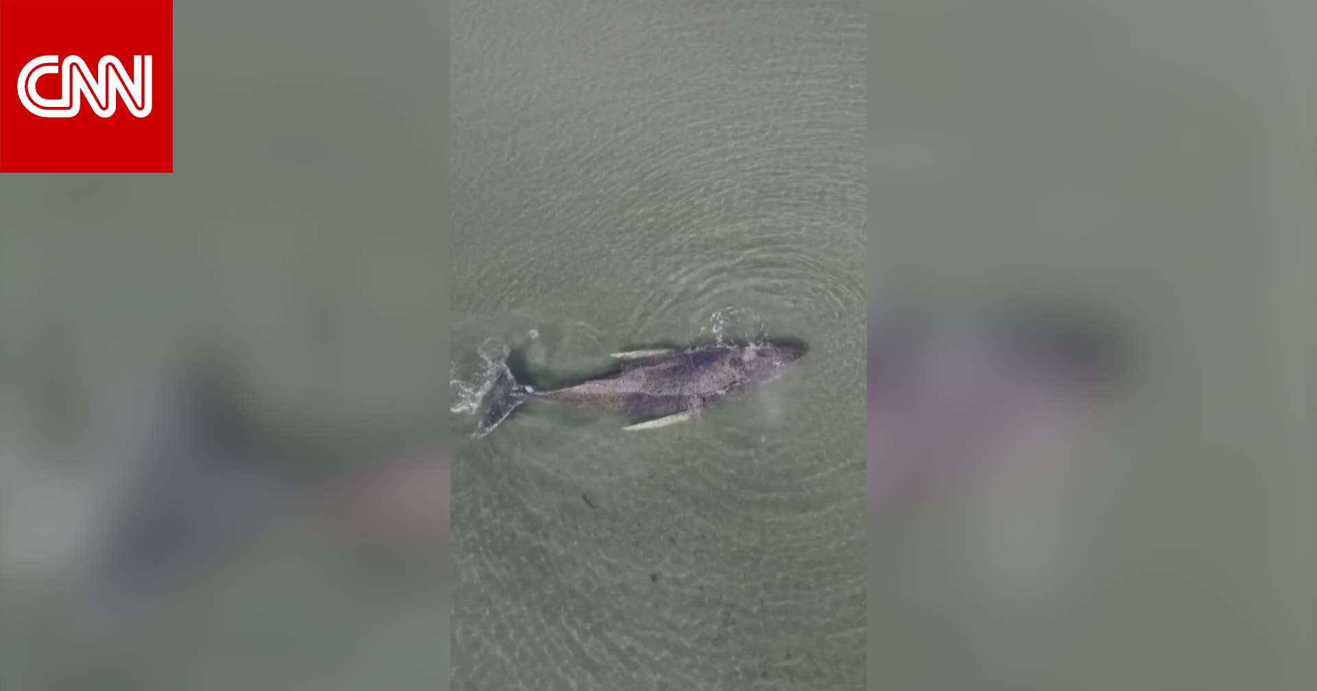 شاهد لحظة إنقاذ حوت أحدب عالق في مياه ضحلة