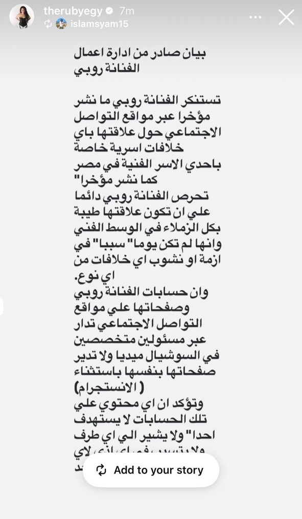 روبي تستنكر الزج باسمها في خلافات أسرية تخص إحدى العائلات الفنية الشهيرة